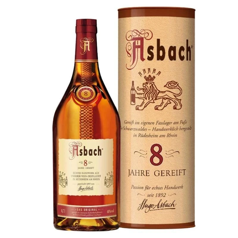 A fruity rich brandy with hints of chocolate; Asbach 8 Year Brandy, a German brandy, made from a blend of 25 wines aged for 8 years in French Limousin Casks.