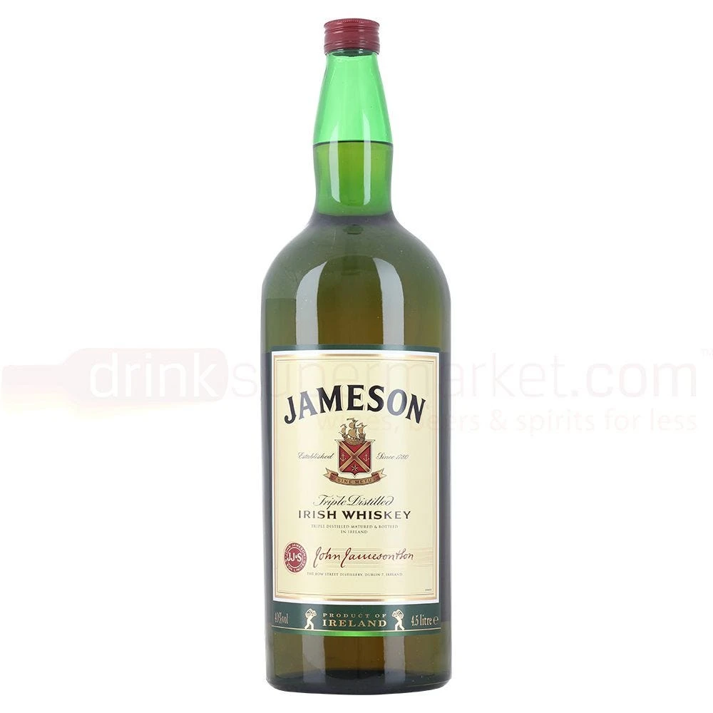 Rehoboam of Jameson Irish whiskey, created in a unique way compared to American and Scottish whisky. Jameson distil their whisky not once, like the American’s, not twice, which is the Scottish way but three times giving it the smoothest texture out of them all.