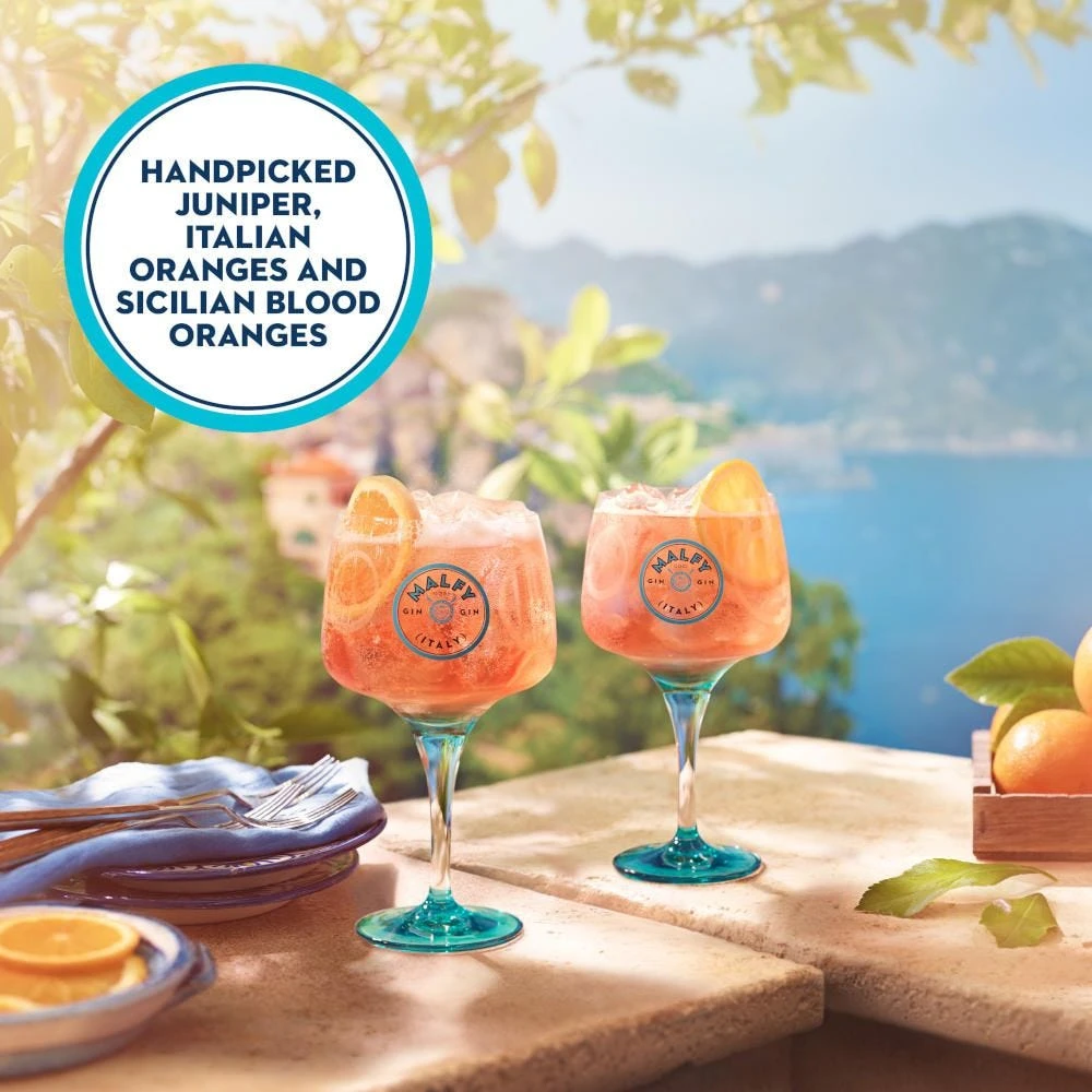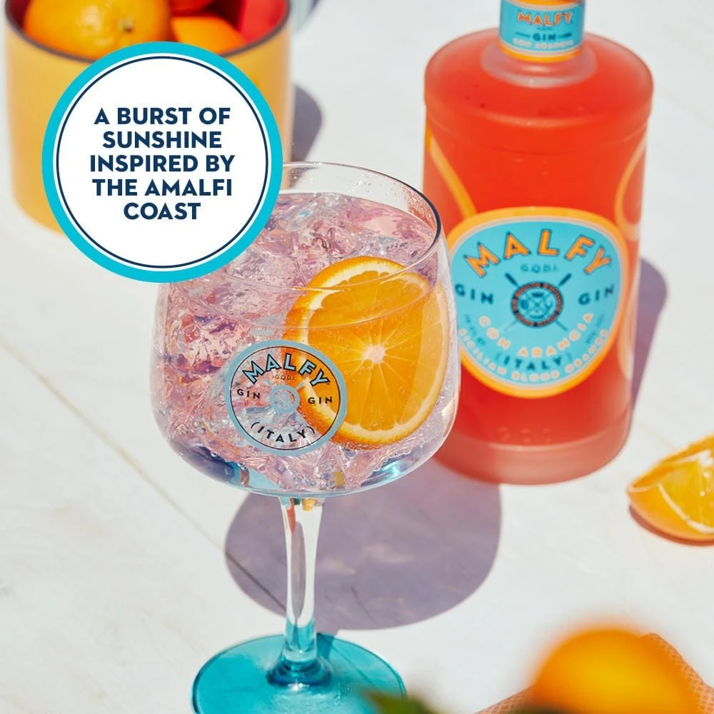 Malfy Gin made from 6 botanicals and Sicilian Blood Oranges. The peel from the Blood Oranges give the liquid a deeply rich red colour and big depth of flavour. Enjoy with an aromatic or light tonic and and garnish with orange peel.
