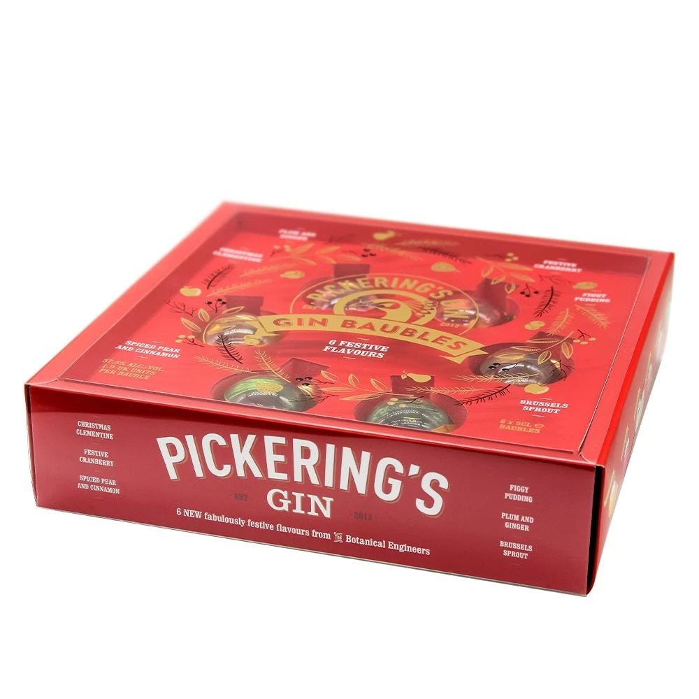Awesome Gin Baubles pack from Pickering’s featuring some of their delicious bright festive creations such as Christmas Clementine, Spiced Pear & Cinnamon, Festive Cranberry, Figgy Pudding, Brussels Sprout and Plum & Ginger Gin. The perfect addition to your Christmas tree.