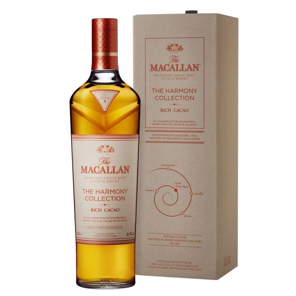 The first release of The Macallan Harmony series matured in seasoned European sherry oak and American oak casks delivering unique rich, dark chocolate notes. Expect aromas of chocolate fondant, honey, oak and hints of citrus and spice. A rich palette of dark chocolate, dates, vanilla and sweet spice with a long rich chocolate finish.